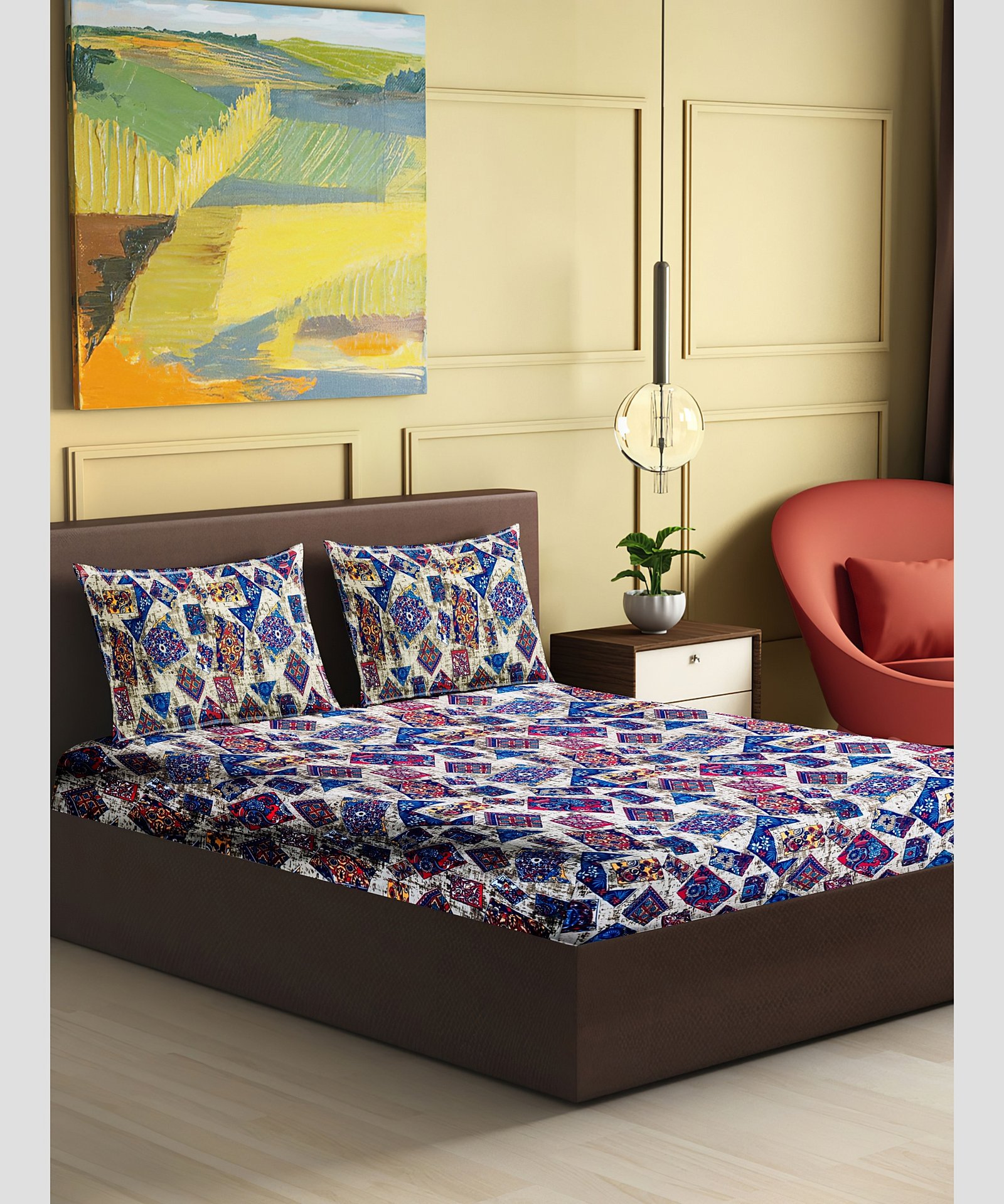 Size: Bedsheet – 90 inch x 100 inch. Pillow Cover – 20 inch x 30 inch. This bed sheet is suitable for use all-year round because cotton as a fabric keeps you cool during summers and warm during winters. The cotton fibers drain away moisture, making the bed sheet breathable and comfortable. Featuring a stylish trendy design, that is a must have – create an impression on your near and dear ones that lasts.